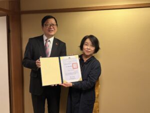 また、会場では僑務委員会による名誉職授与式も執り行われました 。華僑事務の推進や地域社会への貢献が高く評価され、京都華僑総会の大嶋理絵(李秀珠)副会長が「僑務促進委員」に、安田隆昌副会長が「僑務顧問」にそれぞれ任命されました 。
